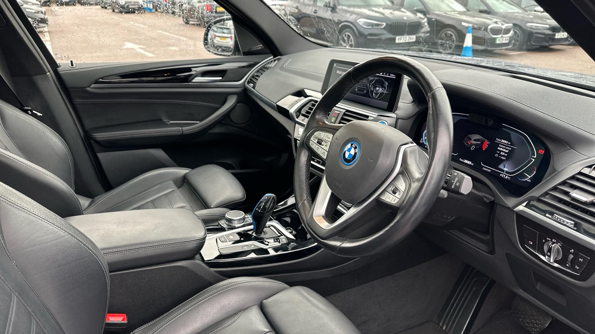 This 2021 BMW iX3 Premier Edition Pro offers exceptional provenance with only one owner and a remarkably low mileage of 26,092 miles for its age, complemented by a full dealership service history. As an electric vehicle, it boasts an 80 kWh battery with a maximum range of 279 miles when new, ensuring ample travel between charges. This Premier Edition Pro trim level comes equipped with advanced technology, including the Driving Assistant Professional suite with adaptive cruise control, a clear Head Up Display, and the comprehensive Parking Assistant Plus featuring a 360 degree camera for effortless manoeuvring.