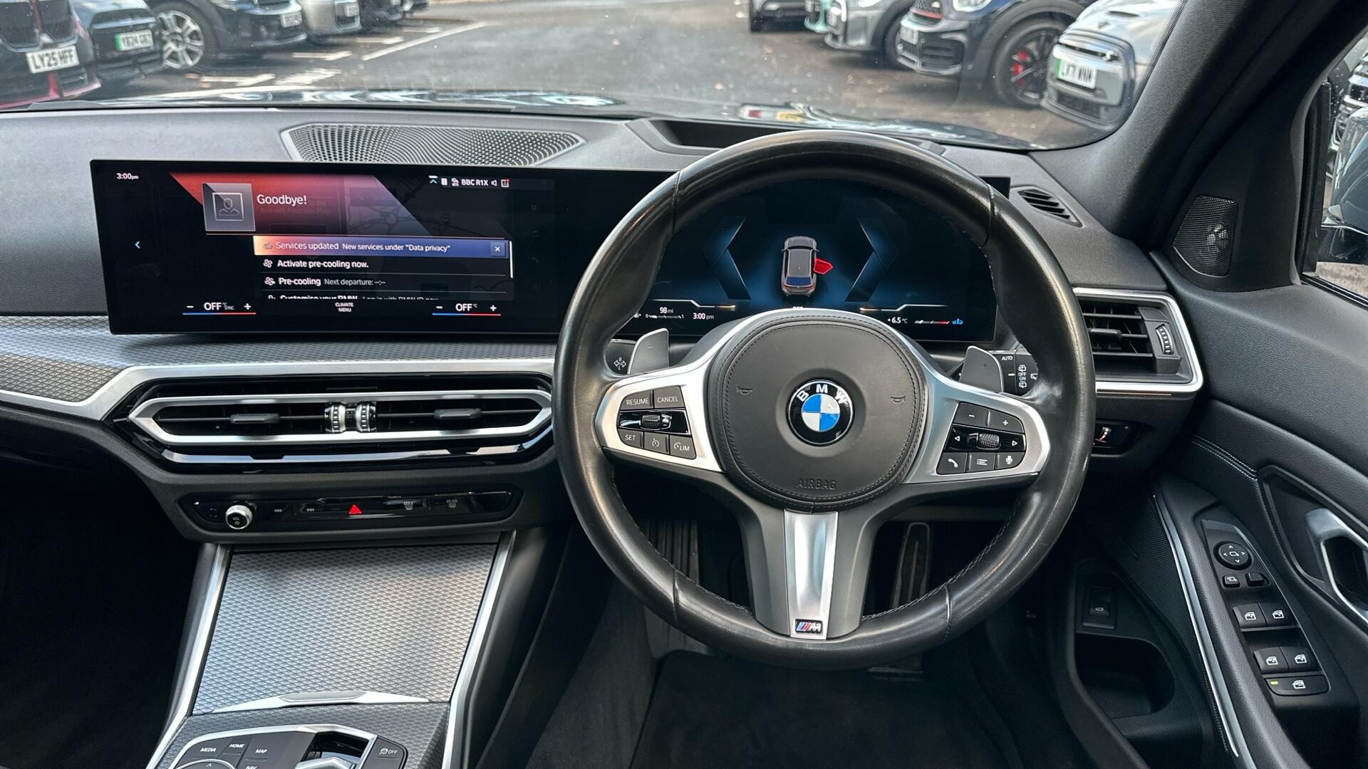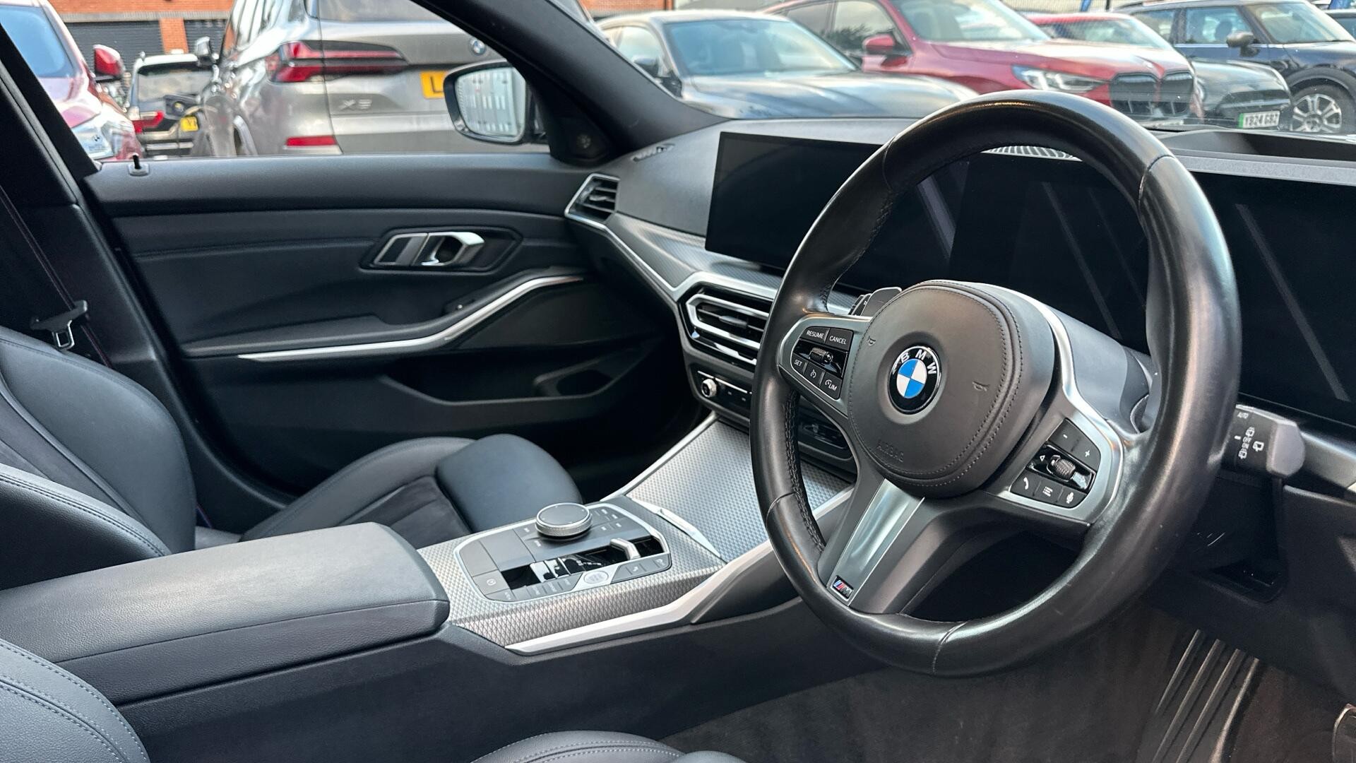 This 2023 BMW 3 Series 320d M Sport is a BMW manufacturer approved vehicle, boasting a full dealership service history and having had only one owner. It features a 2.0L Diesel Hybrid engine, meeting Euro 6 emission standards. This M Sport variant comes with a 12 month warranty and a 12 month MOT provided on purchase. The last service was completed on 2025-01-17 at 44103 miles. Notable features include a Panoramic Glass Sunroof, Harman Kardon Surround Audio Sound System, Visibility Pack with LED headlights, and the Technology Package which offers Bluetooth, Head Up Display, and Wireless Phone Charging, all complemented by the M Sport Pro Package. The inclusion of the M Sport Pro Package, alongside the M Sport trim, signifies a higher specification than many other 3 Series models, enhancing its sporty appeal and driving dynamics. The Panoramic Glass Sunroof creates a bright and airy cabin, while the Harman Kardon sound system provides an immersive audio experience. The Technology Package ensures seamless connectivity and convenience, with features like a Head Up Display and wireless phone charging making every journey more enjoyable. This well maintained and highly specified BMW 3 Series offers a premium driving experience.
