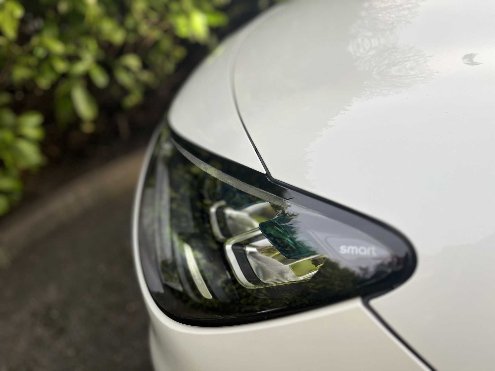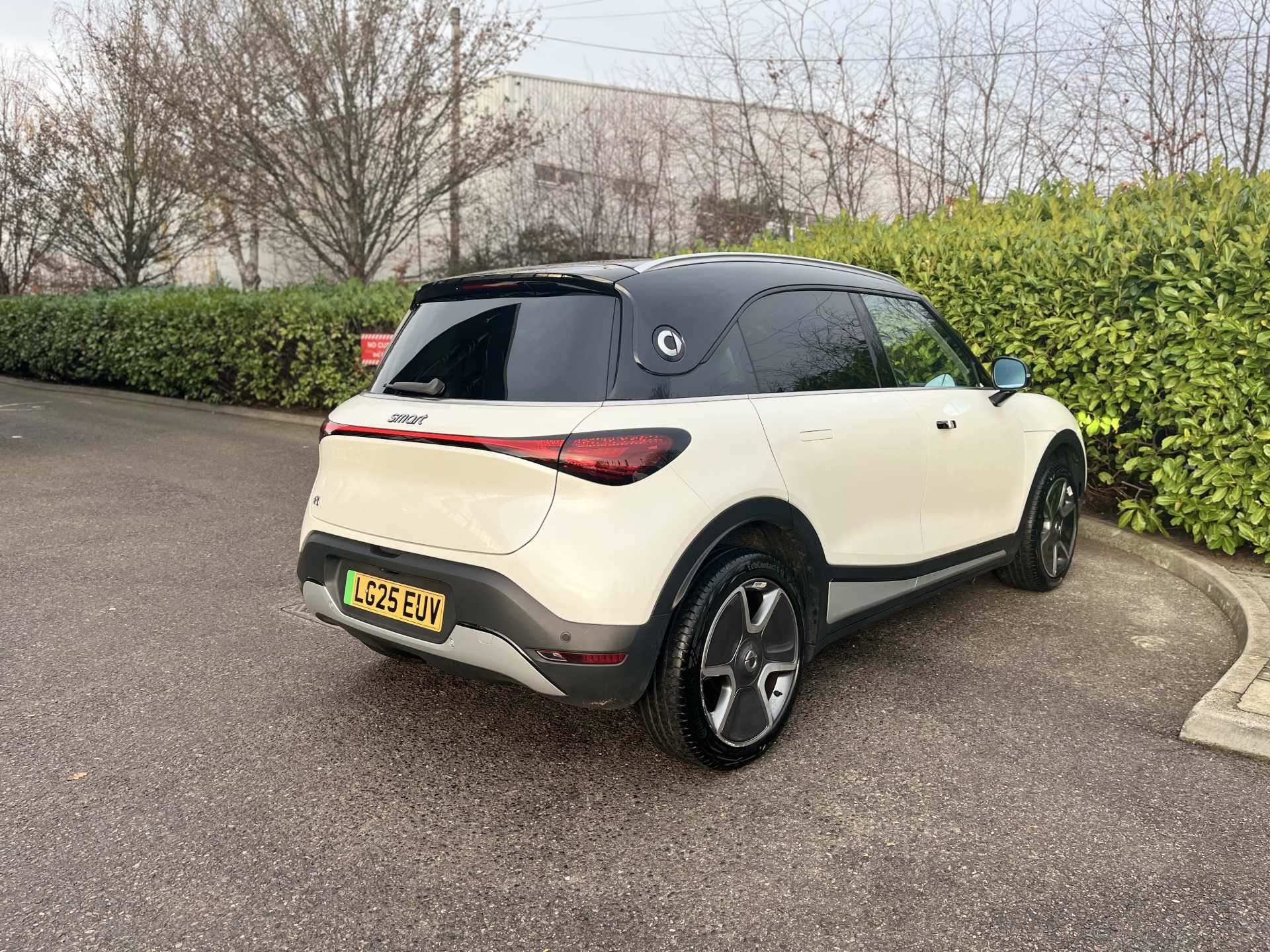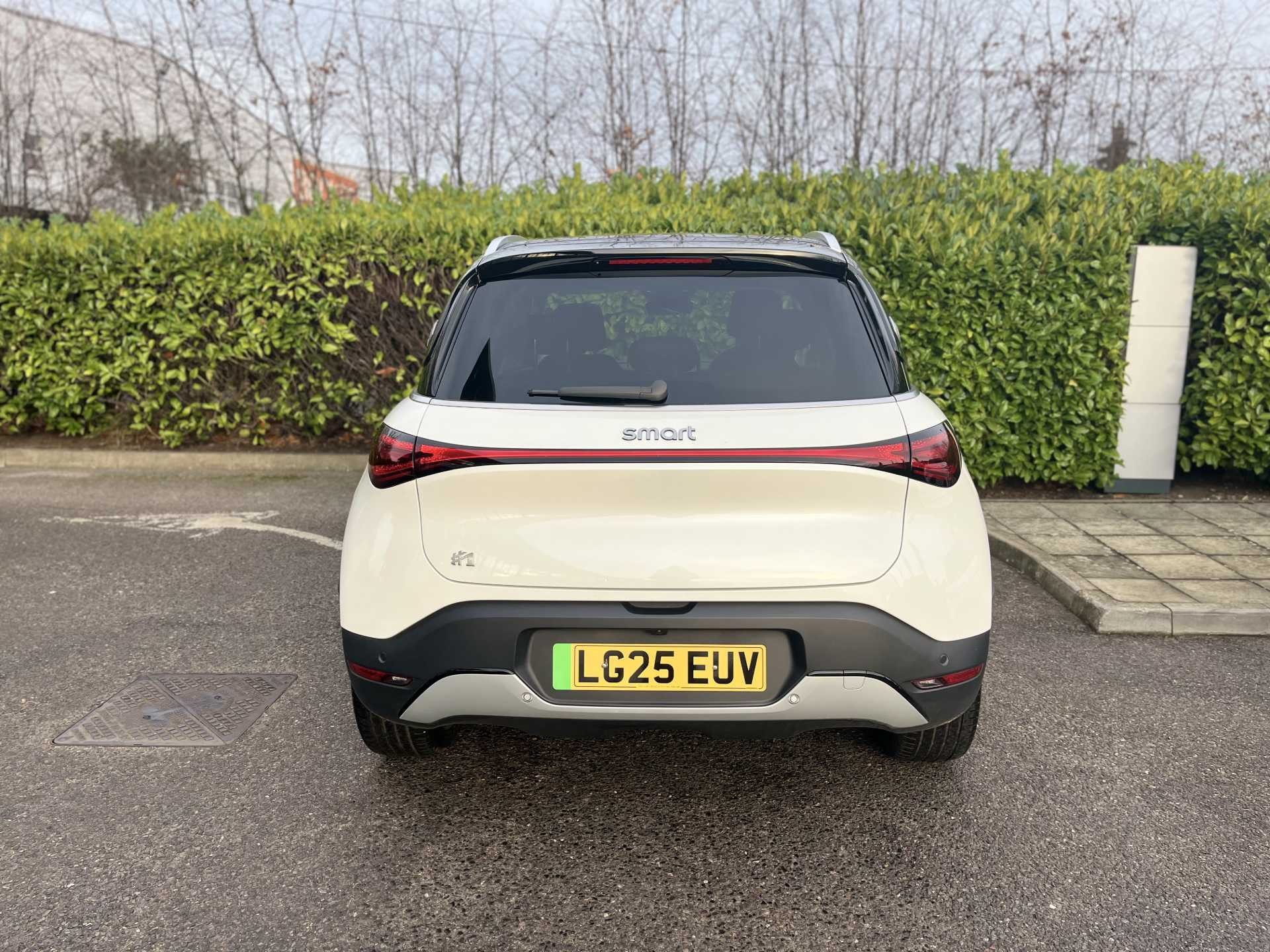This is a 2025 Smart #1 After Dark, finished in white, with 1,936 miles on the clock. It is an all-electric SUV with a 200 kW power output and an automatic transmission, and features a four-wheel drive system for added traction and stability.