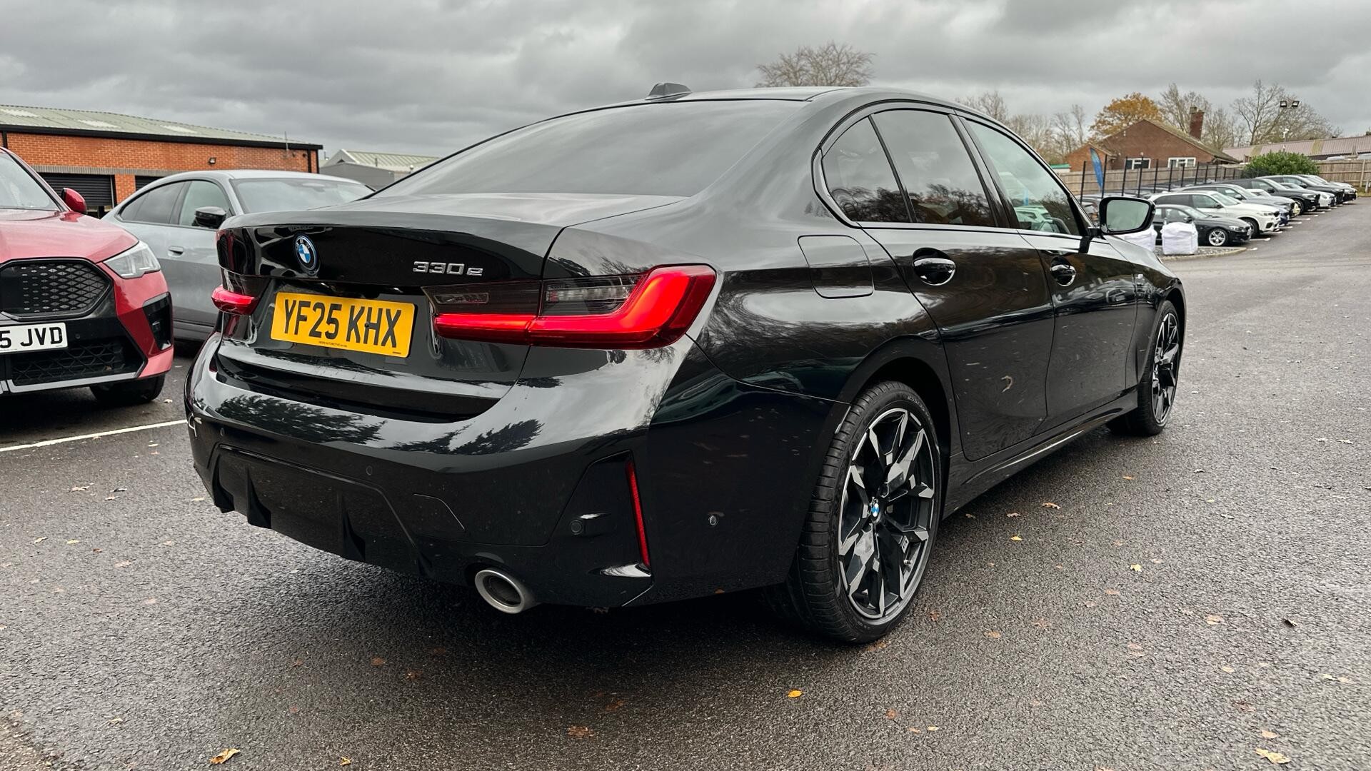 This 2025 BMW 330e M Sport is presented in exceptional condition, having only covered 13 miles and receiving its first service at the dealership on 24th April 2025, ensuring it is BMW manufacturer approved and boasts a full dealership service history. This single owner vehicle features a 2.0 litre petrol plug in hybrid engine, meeting Euro 6 emission standards. It is equipped with striking 19 inch M Light Double Spoke Style 995 M Bicolour alloy wheels with mixed and runflat tyres, and a sophisticated black perforated Sensatec interior.