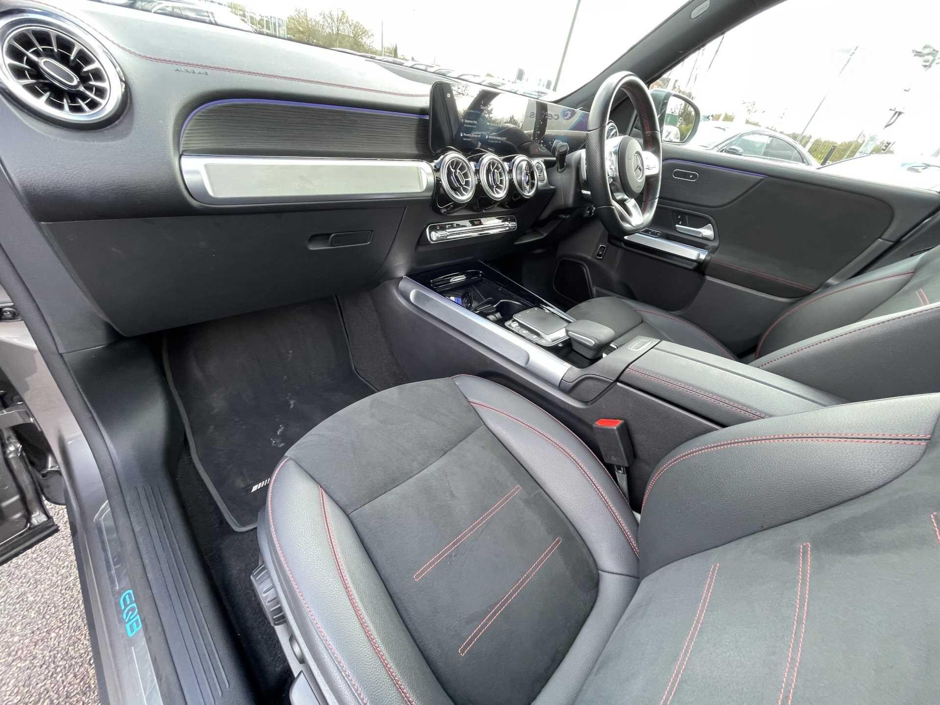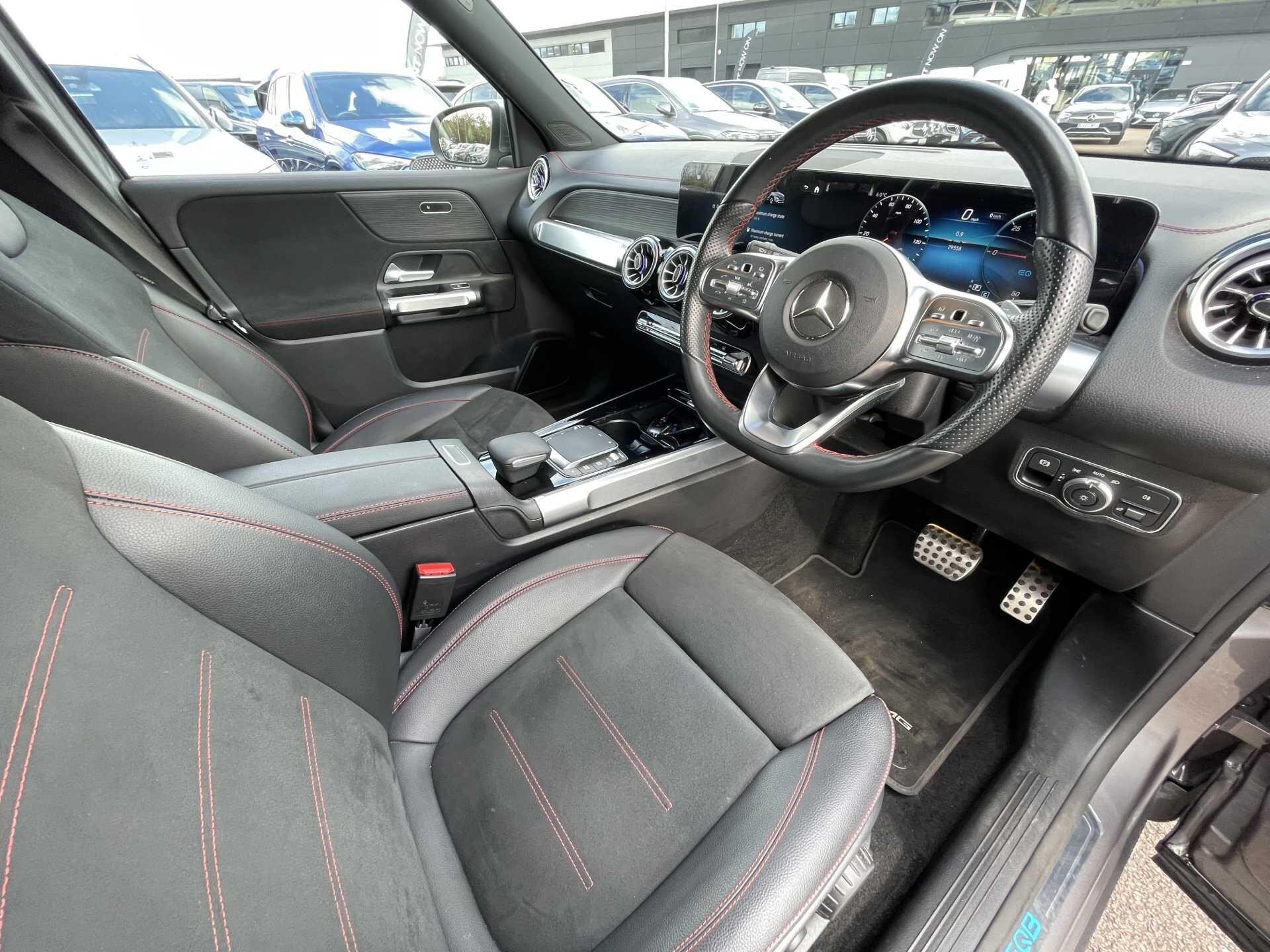 This 2022 Mercedes-Benz EQB 350 AMG Line (Premium) boasts exceptionally low mileage for its age, having covered just 29,557 miles, and benefits from a full dealership service history. This electric, four wheel drive SUV offers a compelling blend of performance and practicality. Its AMG Line trim enhances its sporty appeal, while the Premium designation brings a suite of desirable features. Inside, you'll find a Mercedes-Benz Advanced Sound System for an immersive audio experience, LED High Performance Headlights for superior visibility, and a Parking Package with a reversing camera to aid manoeuvrability. Comfort is further elevated by an electrically operated panoramic glass sunroof and convenient wireless charging for your mobile devices.