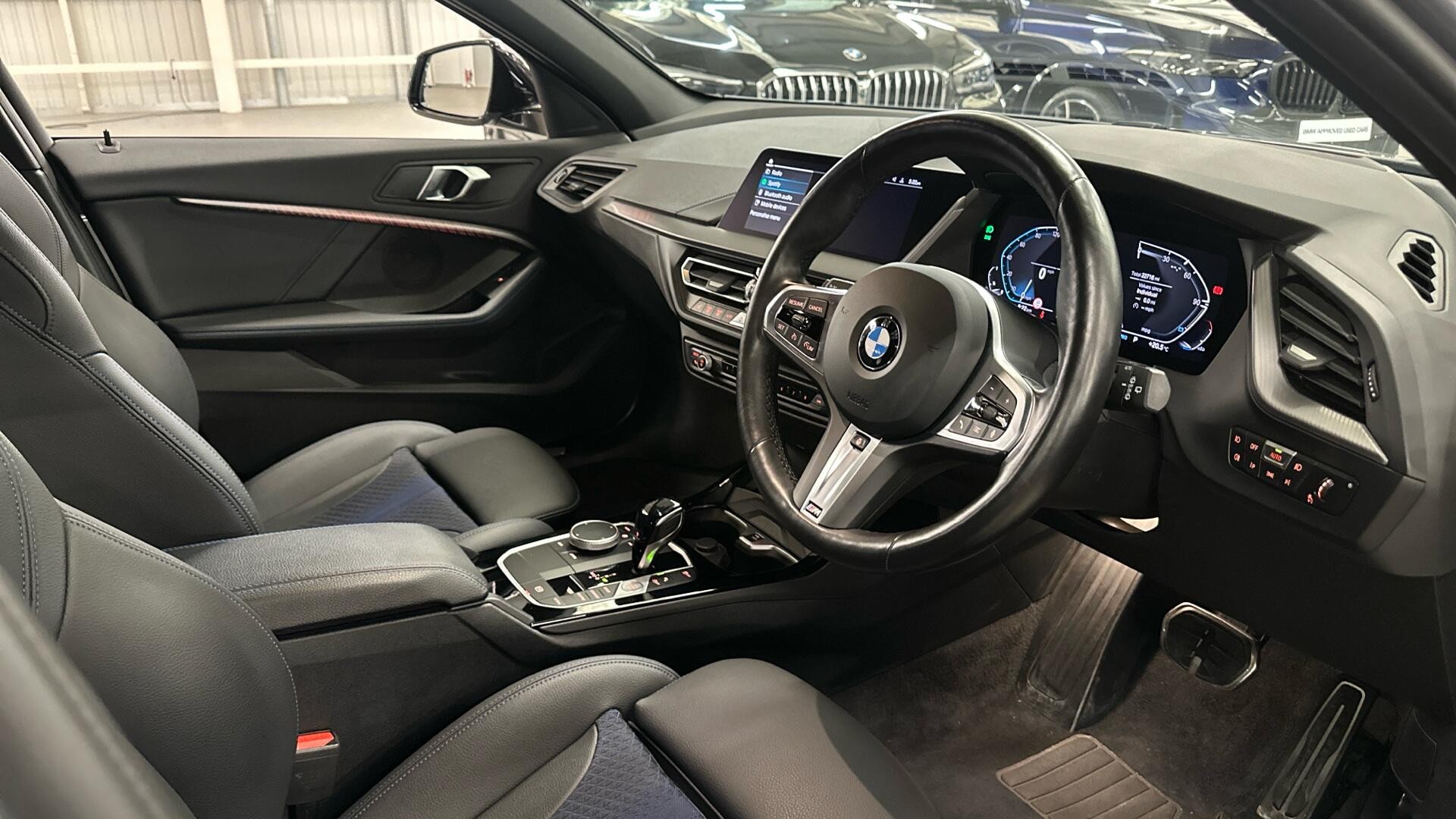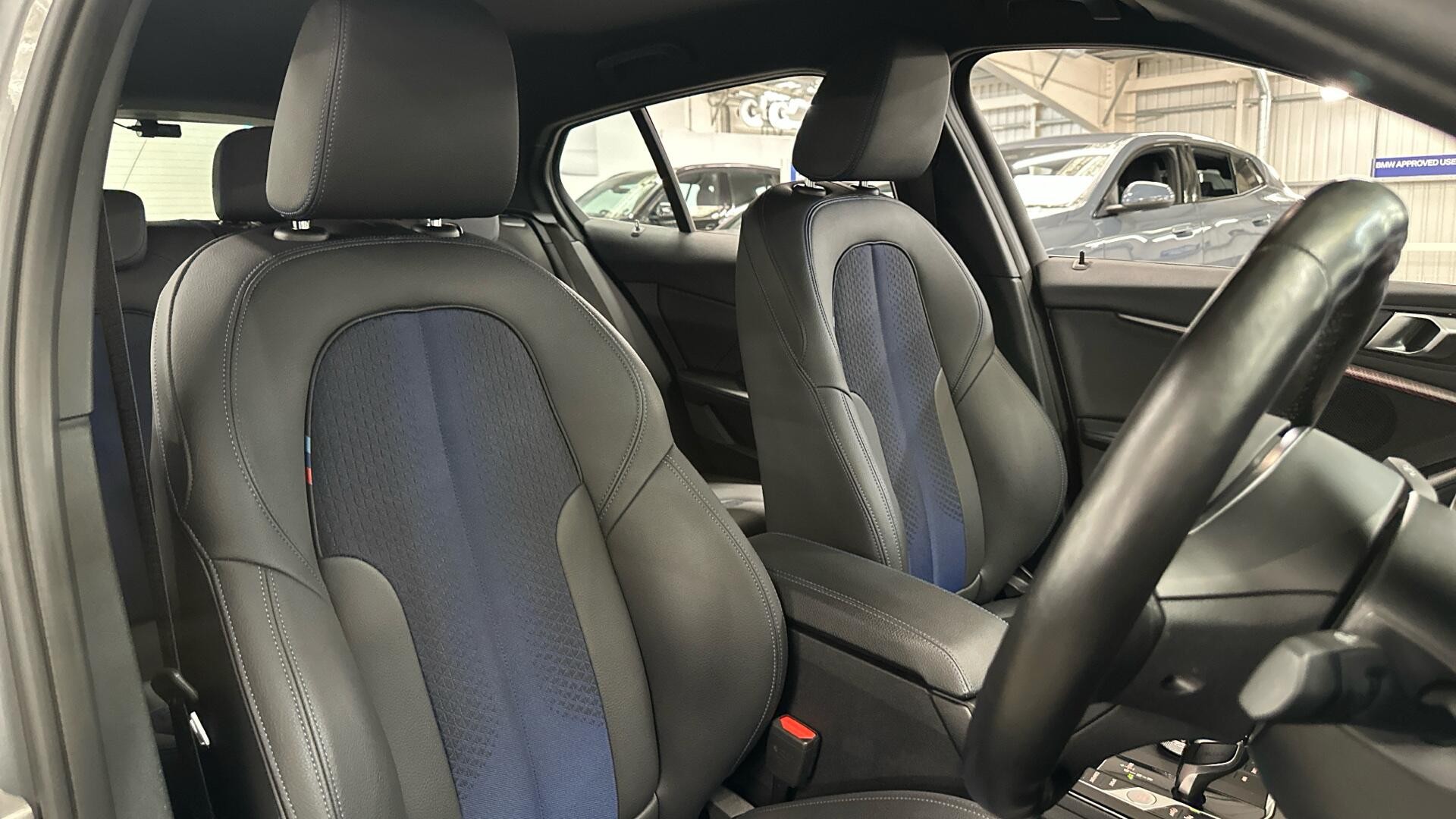 This 2023 BMW 1 Series 118i M Sport (LCP) boasts a full service history and has had only one owner, offering excellent provenance. This Euro 6 compliant model features a 1.5 litre petrol engine and is presented in the sporty M Sport trim. It comes equipped with a Technology Pack, which includes Bluetooth connectivity, a Head Up Display, automatic LED headlights, front and rear parking sensors, a rear camera, and wireless phone charging. The convenience of an electric bootlid is also a notable feature. The BMW 1 Series 118i M Sport is designed for an engaging driving experience, accelerating from 0 to 62mph in just 8.5 seconds, demonstrating its responsive performance compared to other vehicles in its class. The inclusion of Adaptive LED Headlights further enhances its capabilities, providing superior illumination. Furthermore, the generous boot space ensures practicality for everyday use and longer journeys, making this a well rounded and desirable vehicle.