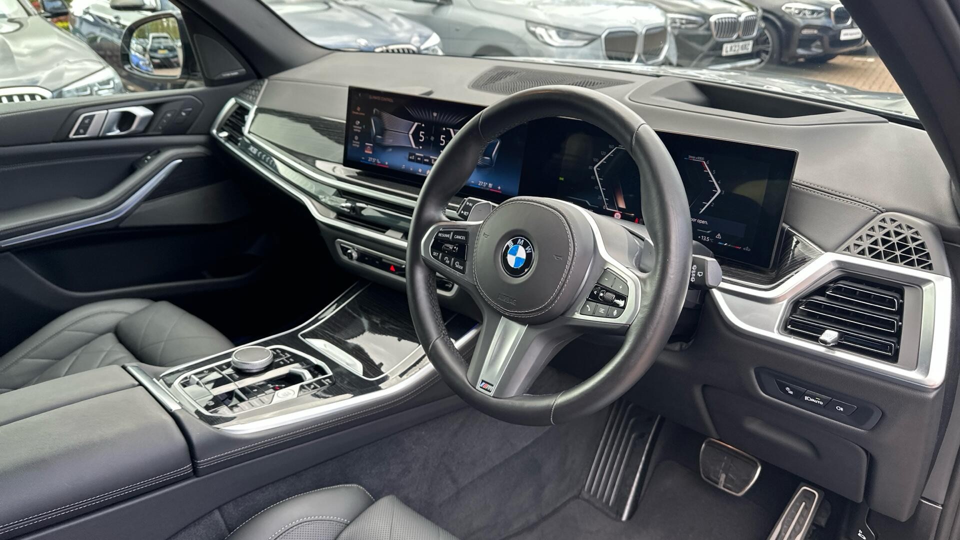 Boasting exceptionally low mileage for its age, this 2025 BMW X5 40d M Sport presents a remarkable opportunity. This four wheel drive model features a powerful 3.0 litre diesel hybrid engine and offers seating for seven, making it a versatile choice for families. Its Euro 6 emission class ensures compliance with current standards, and with a towing weight of 2700 kg, it is well equipped for various needs. The M Sport trim enhances its dynamic appeal, while the Sky Lounge panoramic glass sunroof, including an opening function, floods the cabin with light.