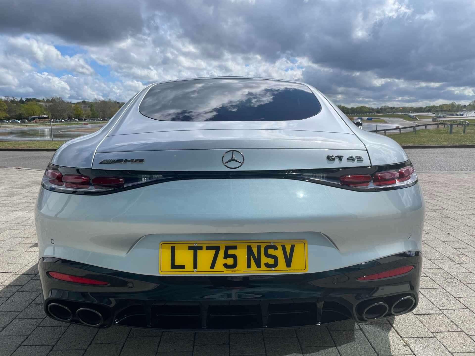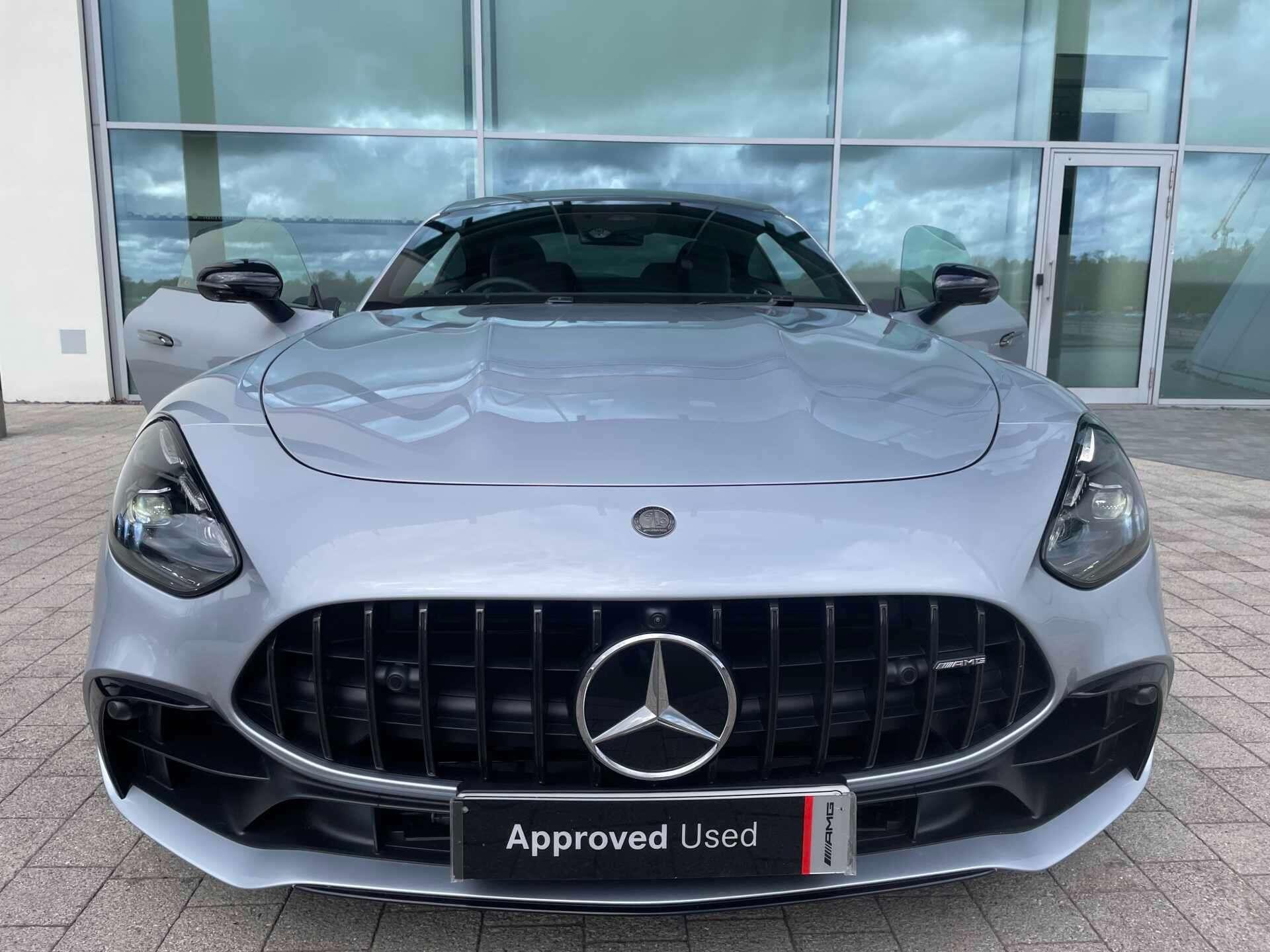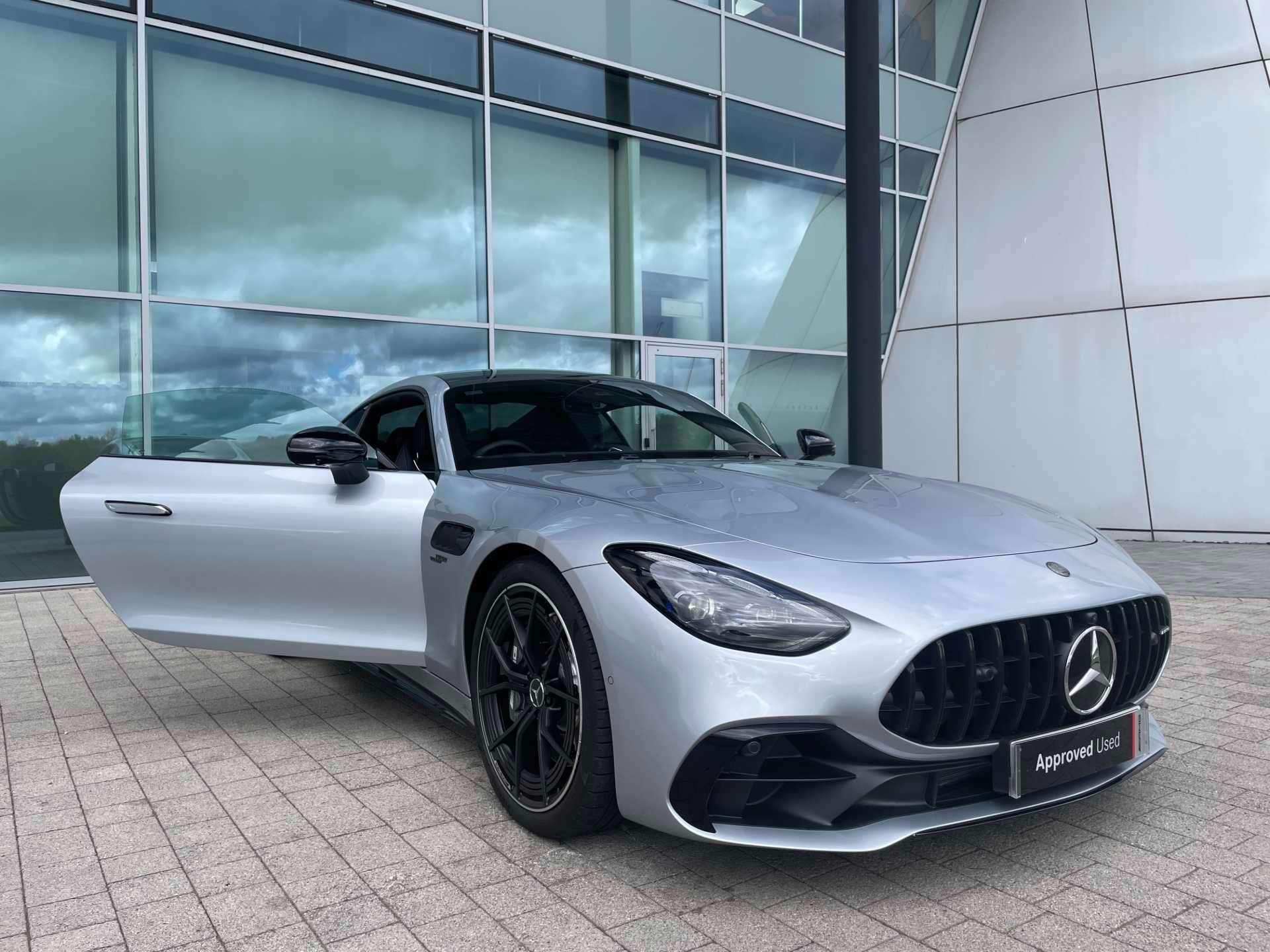 This 2025 Mercedes-Benz AMG GT 43 (Premium Plus) boasts a full dealership service history and remains manufacturer approved, offering peace of mind with 28 months of warranty remaining. Inside, you'll find a luxurious cabin equipped with a Burmester Surround Sound System, a Panoramic Fixed Glass Roof, a Head-up Display for essential information, THERMOTRONIC Automatic Climate Control, GUARD 360° vehicle protection Plus with Digital Extras, AMG Night package, AMG carbon fibre/ Black Piano Lacquer trim, Heat-insulating dark-tinted glass, MANUFAKTUR roof liner in black MICROCUT microfibre, Climatised front seats, Dashcam and KEYLESS-GO with Seamless Door Handles for effortless access.
