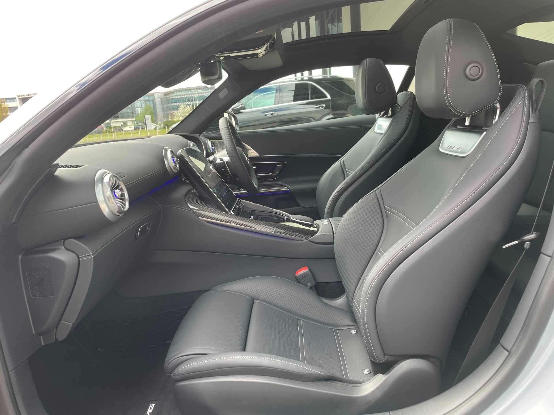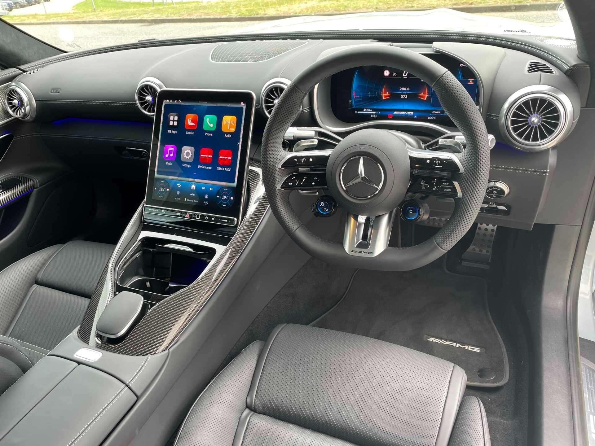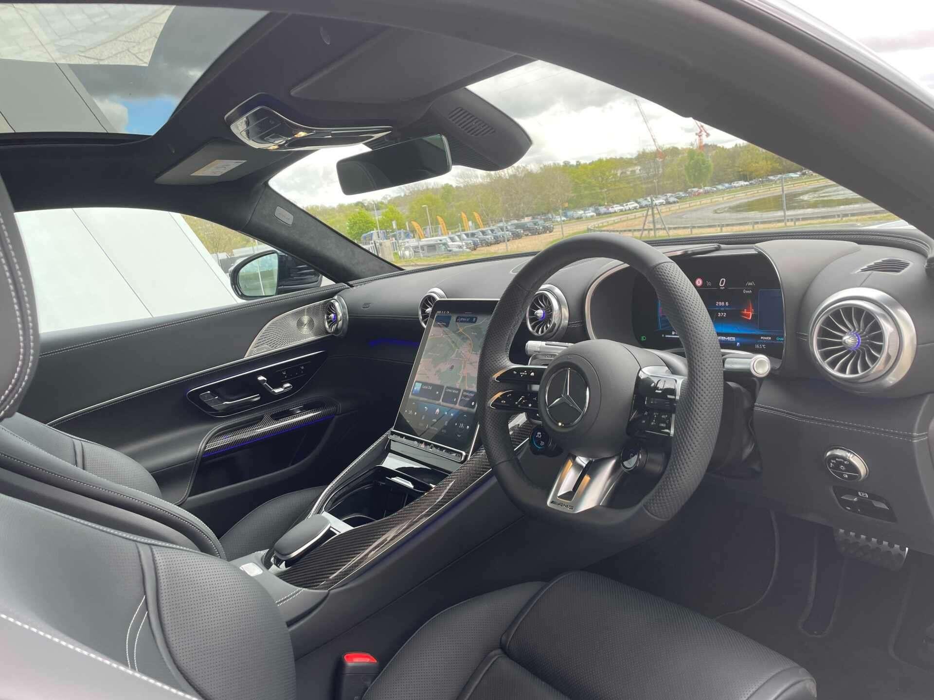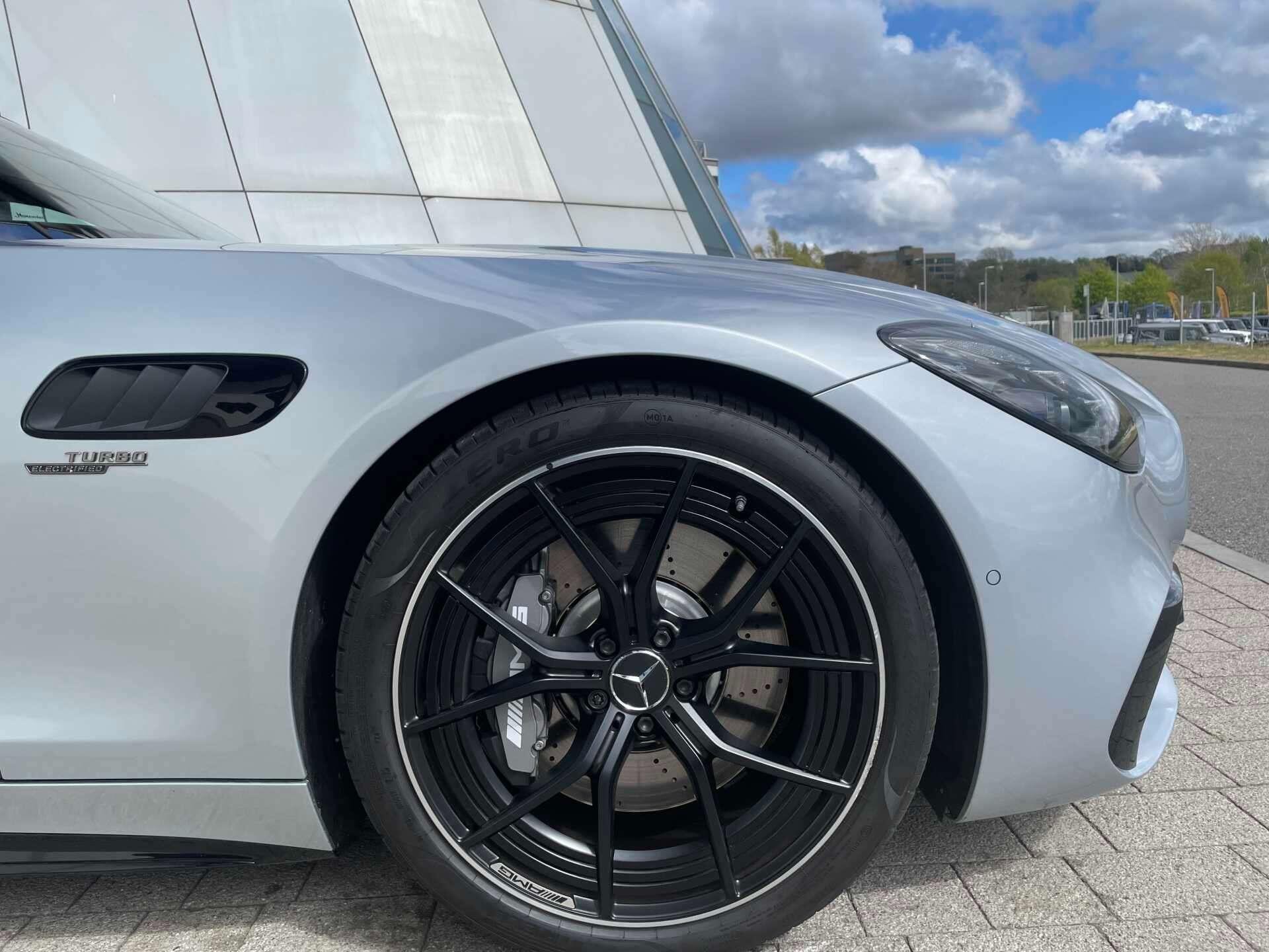 This 2025 Mercedes-Benz AMG GT 43 (Premium Plus) boasts a full dealership service history and remains manufacturer approved, offering peace of mind with 28 months of warranty remaining. Inside, you'll find a luxurious cabin equipped with a Burmester Surround Sound System, a Panoramic Fixed Glass Roof, a Head-up Display for essential information, THERMOTRONIC Automatic Climate Control, GUARD 360° vehicle protection Plus with Digital Extras, AMG Night package, AMG carbon fibre/ Black Piano Lacquer trim, Heat-insulating dark-tinted glass, MANUFAKTUR roof liner in black MICROCUT microfibre, Climatised front seats, Dashcam and KEYLESS-GO with Seamless Door Handles for effortless access.